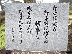 城趾には上杉謙信と並んで、米沢藩9代藩主上杉鷹山(ようざん)公の立像がある。