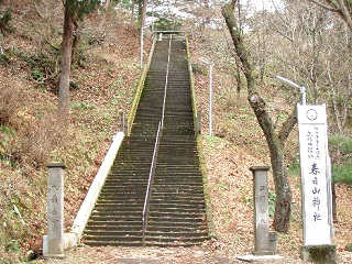 春日山神社は長い石段の上 春日山は謙信誕生の地