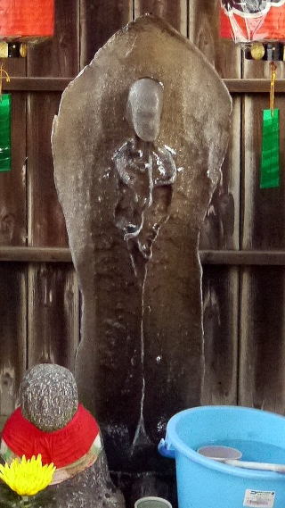 三田から御殿山にかけて、高輪の高台が続きます。昔の東海道は幾つかのルートが時代によって変わっていますが、江戸時代に高輪二本榎と呼ばれた一帯は、お寺が多く寺町と言われていました。港区教育委員会の出している小冊子には、ゆうれい地蔵に関する話が出ています。二本榎は門前町のように賑わっていたのですが、飴屋へ毎日母子が飴を買いに来たそうです。 「雨の日でも傘をささずに来る」 不思議に思った飴屋の主人が後をつけていくと光福寺へ入りました。何か曰くがあるのではないか,と今度は住職と一緒に後をつけると、この地蔵の前にたどり着いたのです。 住職が手厚く供養すると、母子は飴屋に姿を見せることはなくなりました。この地蔵は死んでしまった母親に代わって子供を育てたとの言い伝えもあります。江戸時代から子安地蔵として信仰されてきているのです。 どうしてゆうれい地蔵というのでしょうか。左の写真がそのお地蔵さんです。普通、お地蔵さんは足がありますが、この地蔵さんは上体からスッと細くなり、足なのかどうか分かりませんが、一本の線になって下へ続きます。こんな形から“幽霊”と言われるようになったのでしょうか。光福寺はこぢんまりしたきれいなお寺です。入るとすぐに沢山の石仏があります。無縁仏が供養されている石仏の山もあります。今ではゆうれい地蔵の前にある「開運稲荷」の方に人気があるようですが、静かな境内で地蔵さんの話を思いながら時を過ごすのも悪くはありません。 |