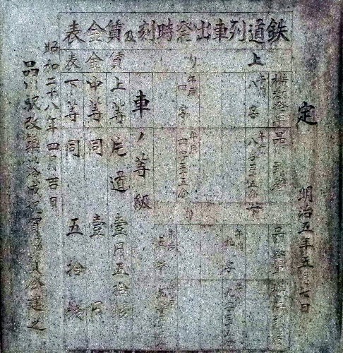 今は(2023年)はリニア駅など品川大改造でどこかへ保管してあるので相が、品川駅の西口(高輪口)の正面、京浜国道の手前にある車寄せに「品川駅創業記念碑」が立っていました。気づいた人は希でしょう。タクシーや不法駐車が居座る狭い構内と歩道の間にあったのです。実はジジも気づかずにいたのですが、先日港区の文化財のしおり、と言う冊子を手に入れ、めくっているうちに高輪界隈の散歩も、ちょっと見直そうと思ったのです。そこで手っ取り早く、品川駅へ行ってみたわけです。その時の話しです。駅が整備され、記念碑が戻ってきたら再度、掲載しましょう。今は工事前の話しをします。ありました。記念碑には品川横浜間の鉄道開通は、明治5年5月七日(新暦・6月12日)でした。「汽笛一声新橋を…」が東京〜横浜間の開通日だと思っていたのですが、新橋と品川間の工事が遅れ、品川〜横浜を仮開業したのだそうです。新橋〜横浜間が営業開始になったのは、明治5年9月12日(新暦・10月14日)です。品川駅は日本でもっとも古い駅なのですが、鉄道の日は10月14日で、新橋へ通じた日になっています。 固いことは止めましょう。それより記念碑の裏が面白いのです。時刻表と運賃が書いてあります。横浜発の上り、品川発の下りともに二本ずつです。上り・横浜発=午前八字、品川到着=午前八字三十五分と言った案配。字と書いてあり、時ではありません。漢字の使い方は江戸時代のものはもちろん、明治になってもかなり音の通りで、意味と異なっても気にしないようなところがあります。 口語文学が一般に広まりはじめたのは明治も半ば過ぎからですから、現代文で書く日本文学の歴史も知れたものです。古典は世界に誇るべきものですが‥。余計な話になりましたが、料金も書いてありました。 ▽上等 片道 壱円五拾銭 ▽中等 同 壱円 ▽下等 同 五拾銭 この料金は明治5年5月7日のものです。差別だ何だと騒ぐ前に、皆、中等、上等へ乗れるように頑張ったのです。能力もないのに一流企業を狙い、当然、入社できないと「自分の狙いに合わない」「好きな仕事ではない」などとほざく馬鹿が多い世の中です。しかし、グリーン車はありますね。国内航空路線のスーパーシートもあります。国際線ではファースト、ビジネス、エコノミーがあり、さらに料金で細分化されています。いつの間にか、職業の選り好みをしている馬鹿は落ちこぼれます。いずれ生活保護の原資などなくなります。その頃、頼りにしていた立民党のセンセは落選しています。 初めからトップの座に座りたいとか、優良企業でぬくぬくと給料をもらいたいなどと言うのは夢空事です。一流になればなるほど仕事は過酷です。怠けた甘え学生の務まる世界ではありません。こういう人は「午前八字」の横浜発の下等切符を買えるかどうかも、怪しいものです。「八字は八時の間違いだろう」などと言うのは野暮です。漢字の使い方はこんなものだったのです。 明治5年には生活保護や、何でも可愛そうでお金をばらまく、お助けマンなどはいませんでした。立民党に絵空事を期待した馬鹿が、泣きを見るのは時間の問題でしょう。 |