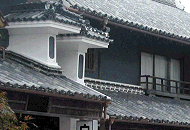 “うだつ”(卯建)とは、軒を連ねる隣家との境の妻壁の横に張り出し火災に備えた瓦屋根付きの火よけ壁のこと。
