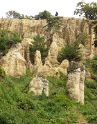 層の厚さは40〜80mに達している。脇町には広く分布しているが、見事な土柱が見られるのはここだけ。