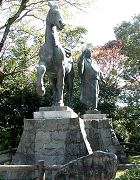![]() 一豊の妻と馬 典型的な平山城で天守閣は三層六階で、追手門、黒鉄門など15の建造物は国の重要文化財を受けている。 本丸にある懐徳館には藩主の籠や武具などが展示されている。 |