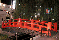 道路の拡張でわずかに欄干だけが残っていたが、現在は道路の傍らに御影石造りの橋がかかり、朱色の欄干