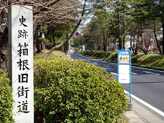 日本橋から数えて9番目の宿場、小田原からいよいよ天下の険の箱根路を行く。といっても徒歩ではなく車。山越えも一日 がかりではなく、往時の面影を残す地点をピックアップしながらの旅である。 この三枚橋とは、当時、三枚の板でできていたことからこう呼ばれている。この橋より箱根峠への上り坂四里を「箱根東坂」、 峠から三島へ下る坂四里を「箱根西坂」といった。