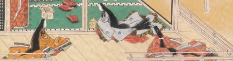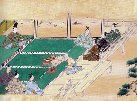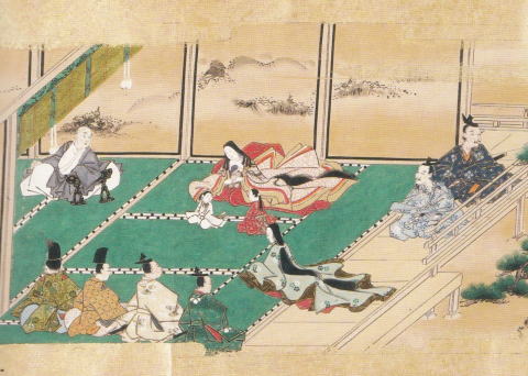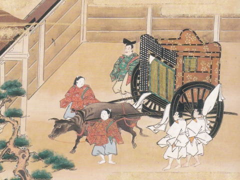 | ②常葉六波羅に参る事 さて、九条院雑仕常葉の生んだ子供は三人いた。皆男だったので、放っておくことは出来ないと、六波羅から兵を送って尋ねると、常葉や子供はいなかった。常葉の母の老尼だけがいた。「姫・孫の行方を知らないことはまさかあるまい」と、六波羅へ呼び出して尋ねられた。常葉の母が言うには「左馬頭が討たれたと聞いた朝から、歳も行かない子供を連れて、行方知らずになりました」と言うと「知らない訳はないだろう」と、さまざまな拷問で問いただしたが、母がわずかに問いただす時間が空いたときに言うには「私は六十を超えた老いの身です。何事もなく過ごしても、どれほどの命があるでしょうか。三人の孫共は、いまだ十歳にもならない幼い者です。もし何事もなく過ごせば、命は遥かです。今日、明日とも知れない露の命を惜しんで、末は遙かな三人の命をどうしてなくすことが出来ましょう。例え行方を知らせていたとしても、言う事はありません。まして、夢にも知らない事です」と言った。(上・常葉の乗る車。呈子が用意した) 常葉は大和でこの話を聞き「我が子を思うように母は、私を愛おしむのでしょう。私故に苦しみを受けると聞きながら、どうして出て行って助けないような事が出来ましょう。前世の果報がなく、義朝の子と生まれ、父の咎が子に懸かり、連座して命を失うことは、理屈が通りません。その理由もない我が母が憂き目を見るのは、さながら私の咎です。この後も子が欲しければ、義朝に血のつながる子を養ってでも、いくらか気は慰められるでしょう。計り知れないほど長い時間を経ても、消えることのない親子の仲です。責め殺されて後は、悔やんでも甲斐はありません。母がこの世にあるときに、出て行って助けます」と思い、三人の子供を連れて、故郷の都へと帰った。 元の住み家に入ってみれば、門戸は閉め切られて人影もない。近所の人に「年寄りはいかがしたでしょう」と問いかけると「先日、六波羅へ召されて、その後は下働きの人々も逃げてしまい、このように浅ましい状況になったのです」と語った。 「そう言うことですか」と常葉はいつまでも尽きない涙を流した。 常葉は九条院(藤原呈子の邸)へ行き、泣きながら話したのは「女のはかなさはどうしても逃れられないと思いながら、この子供達が無残で、片時でも身を添えていようと、幼い者達を連れて、片田舎へ忍んでいましたが、老い先短い母が、六波羅へ呼び出され、いろいろと戒められ、問われていると聞きます。子供のことはどうなるか分かりませんが、母の苦しみを助けるために、子供を連れて行こうと思います」と言うと、御所(九条院呈子)を始め、居合わせた女房達は、皆涙を流した。 「普通の女房の気持ちならば、“老いた母は今日とも知れぬ命。命を失うなら、後の世を弔おう。行く末の長い子供を助けよう”と思うだろうに、子供を皆失っても、母一人を助けようとする志は滅多にない。仏神はきっと御哀れみ給うでしょう。子供もまた、武士の子とも思えず素直に言う事を聞く。このまま殺されるのは、無残と見える顔立ちです。今この御所へ来ることは、何を意味するか皆が知っています。尋常に出で立ちなさいませ」と口々に言うと、中宮もその様にお考えで、親子四人、清潔な装いをさせ、牛・車・下部、などもそれ相応のものを仕立て、六波羅へ送った。(左・清盛と会う常葉)九条院を出て、河原を東に進んでいくと、三途の川のほとりで、死者の着物を剥ぎ取る鬼こそいなかったが、三途の川を渡る心地がして、いよいよ六波羅に近づくと、屠所に赴く羊の歩みが、今日の我が身と重なって寂しい気持ちだった。 六波羅へ着くと伊勢守景綱が身柄を預かった。常葉が言うには「女心のはかなさは、この子供達がもし助かるかも知れないと、田舎へ連れて下ったのですが、罪もない母が召し出され、辱めを受け、苦しみに遭っていると承り、子供を先立たせるとしても、母を何とか助けようと思い定めて、お尋ねの子供を連れて参ったのです。母を許して下さい」と泣く泣く言うと、聞く人は孝行の志を感じて、皆々、涙を流した。伊勢守景綱はこの旨を大弐殿に申し上げると、常葉の母を寛大に処置した。母は景綱の宿所へ来て、姫、孫を見て絶え入るように嘆いた。しばらくして起き上がり、常葉の顔を辛そうに見て言うには「ああ、恨めしい心遣いです。老いた我が身はとても後の世が近いのです。長らえたとしてもいつまででしょう。この身に代えて孫共を助けたいのです。どうして子供を連れてきて、私に辛い目を見させるのですか。姫・孫達を二度見る事は嬉しいけれど、孫達が命を失うことこそ、悲しいのです」と、手を取って組み、顔を並べて同じところに伏し倒れた。 大弐清盛が常葉を呼び出すと、子供を連れて清盛邸へ出向いた。六歳・八歳の子を左右に、二歳の牛若は懐に抱いていた。常葉が泣きながら言うには「左馬頭は罪深い身