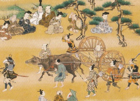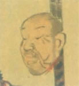 | ⑦信西の首大路を渡し獄門にかけられる事 同十七日、宮本判官季経以下の検非違使、大炊御門河原で、信西の首を受け取り、大路を引き回し、東の獄門の前にある樗(おうち)の木に掛けた。京中の者たちは身分の上下を問わず市を成すように集まってこれを見た。その中に濃い墨染めの衣を着た、隠遁して年を経たような僧が居た。この首を見て涙を流して言うには「この人がこのような目に遭う、その咎は何事なのか。天下の明鏡が今割れたようなものだ。誰が昔を見、今を考えるのか。老子の書物を読むときには、世襲の儒者も口をつぐみ、言葉で教える仏教も、それと対する密教の深い教えを講義する時も,悟りを開いた僧侶が頭を傾けていたのだ。この人を良く知っていたなら、国家もますます安泰だったのに。おもねり、へつらう臣にほろぼされて、忠義で賢かったと言う名前だけを残すのはなんとも空しい。朝廷の敵でもない人の首を引き回して獄門にかける先例はあるのか。罪科はどんなものなのだ。前世の業、現世の行いを現世のうちに報いを受けるなど、誠に計りにくい事だ」と、夜も恐れず,人にもはばからず,言葉にして泣くと、これを聞いた人達は、皆涙を流した。=右車の上は引き回され、獄門にかけられた信西の首= 紀二位の心の中を思いやると、誠に愛おしい。入道の行く末を知らないで,嘆く心も類もないが、死骸を掘り起こして首を斬り,大路を引き回し,獄門の木に掛けられたと聞いて,どんなことを思うだろう。海山とも頼み奉る君は、取り込められていて、月日の光さえご覧になれない。 僧俗十二人の子息はそれぞれ召し置かれ、死生はいまだに決まっていない。 「我も女の身ではあるけれど,どんな目に遭うのだろう」と、伏し沈んで泣き続けた |