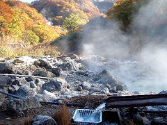 八幡平の中腹にある温泉郷の一つ。古くから湯治の湯として親しまれ「馬で来て下駄で帰る」といわれるほど療養効果があるという。地熱で床が温められているオンドルの宿は、昔の湯治の雰囲気を残す。 |