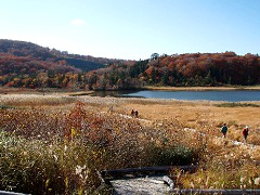 角館から田沢湖町までの約20km、国道46号線沿いには奥羽山脈の山々から湧き出た水が湿原となって広がっている。冬には深い雪に閉ざされる一帯も「抱返り渓谷」をはじめ、名瀑、ミズバショウの群生地などがあり、秋は紅葉の名所、春には湿原植物の花々、初夏の新緑を求めて訪れる人々も多い。 |