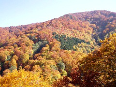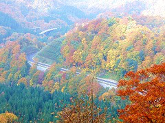 小安峡から約10km国道398号線と分かれ、県道282号線を辿る。いまは盛りと誇る山の紅葉を堪能しながらのドライブだ。