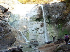 国道沿いの駐車場に車を駐め、深い峡谷への階段を下る。300段を超える階段