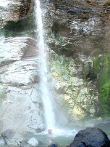 60mもの断崖絶壁の岩の裂け目から轟音とともに吹き出す白煙化した熱湯と、