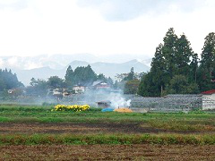 奥羽山脈の麓といえば、温泉の宝庫だ。まだ昔ながらのひなびた温泉や、湯治目的の自炊の宿などが残っているような気がするのは都会人の勝手な郷愁としりながら、もしやと思いながら地図を頼りに温泉地を探す。 北上市街をわずかに離れると、すでに刈り入れされた田んぼの向こうに色づきはじめた山々が浮かぶ、日本の農村の原風景が広がっていた。 |