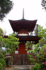 畝傍山の麓、かつての久米町の集落の北はずれ、木立の中に金堂・観音堂・多宝塔などがひっそりと建つ古寺。 |