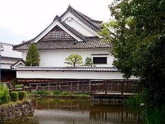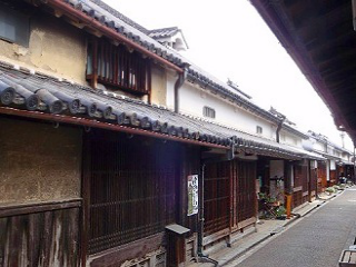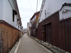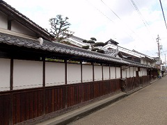 橿原市、JR畝傍駅から飛鳥川を隔てた西に東西600m、南北300mに広がる古い町並み。かつては戸数1,100軒、人口約4,000人で、町屋は切妻造、本瓦葺きで、6町に町割りされ、9つの門から橋を渡り外部の道路につながっていた。 |