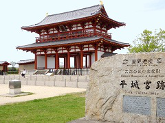 平成22年(2010)は平城京に遷都してちょうど1300年、来年はその長い歴史を祝う祭典が行われる平城京は、いま朱雀門の北700mにある大極殿完成を目指して復元工事が進んでいる。平城宮跡は世界文化遺産でもある。 |
