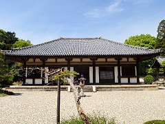 創建当時は講堂として建立され、鎌倉時代に大修復された本堂の中には帝釈天、不動明王、薬師如来、日光・月光菩薩など仏像が安置されている。なかでも調和の取れた美しさと優しさで、人々の心が癒される「技芸天」は必見だ。いずれも重要文化財である。技芸天はヒンズー教の神シヴァ神の髪から誕生した天女で、器楽や舞踊の創始者といわれている。 |