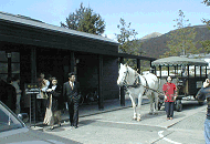 湯布院温泉は10km西、大分市からは大分自動車道路で1時間。個性的な美術館やおしゃれなレストラン、民芸風の可愛いお土産屋、温泉場とは思えないアートな造りの温泉宿が狭い路地に並ぶ。九州の軽井沢と呼ばれ、町の中をゆく観光馬車からは若い女性の華やいだ声が響く。今や女性の憧れの地でもある。