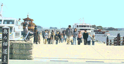 色とりどりの看板を掲げた土産物店や食堂が並ぶ。