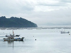 南金華山国定公園のほぼ中央に位置する志津川へは小さな入江や岬、また断崖と複雑なリアス式海岸が続くが、