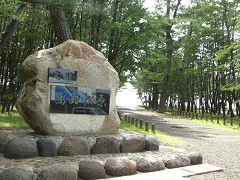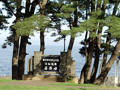 を包むように弧を描いて約2kmの白い砂浜に黒松や赤松が約7万本もあった景勝地。