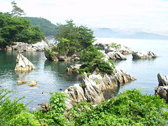 広田湾から唐桑半島には大理石質の白い岩礁の織りなす美しい海岸線が続く。半島の付け根に近い大理石海岸は