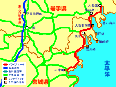 今回は大船渡市から陸中海岸国立公園を南下、南三陸金華山国定公園をつなぐ約170kmを2回に分けた