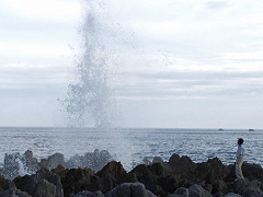 を吹き上げる。すさまじい轟音ととともに吹き上がる海水の迫力ある風景を、ベンチに座って眺めることもできる。