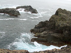巨釜と並んで半造といわれる岬も同じような断崖で、トンネル岩、東風穴と名のついた岩礁があり、巨釜と半造の間は