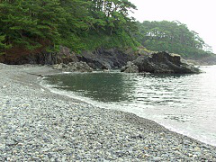 岬には小さな漁港があってアワビ、ウニ、岩ガキ、ホタテ貝、ホヤなどの漁で水揚げされたばかりのこれらの貝類が水槽に