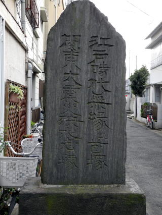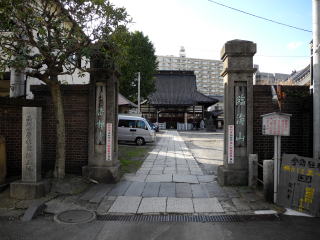 品川宿を歩いていると、幾つものお寺に出会います。高輪から品川宿にかけては、まさにお寺街道といっても良いくらい、沢山のお寺があります。台場横町から少し下り右手の横町の先に法禅寺=写真・左=があります。門の左に「品川小学校発祥の地」の標示が有り、境内に入ると左側に法禅寺板碑、流民叢塚碑の説明板があります。板碑は戦国時代に作られ初め多供養塔ですが、流民叢塚は天保の大飢饉で亡くなった人たちの供養塔です。