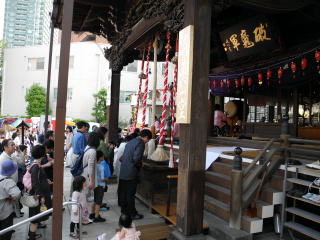 | 清正公を祀る寛林寺は東京・高輪から白金へ下ったところにあります。毎年5月の4、5日には、高輪の台地を通る旧・東海道から脇道へ入り、清正公前へと抜ける坂道は、いっぱいの露店で賑わいます。 このお寺は加藤清正が朝鮮出兵の後に、朝鮮から連れ帰った王子が小湊の寺の住職となり、その後、熊本藩の中屋敷だった高輪に覚林寺を開いたのだそうです。高輪にはかつて熊本藩・細川邸があり、忠臣蔵でお馴染みの大石内蔵助らが切腹した旧跡もあります。 寛林寺は寛永8年(1631年)に開かれたそうですが、清正公の勝負強さから「あらゆる勝負に勝つ」とされるお守りの“勝守”や、勢いよく運を開く「海運出世鯉」をかたどる紙の鯉のぼりなどが人気です。 |