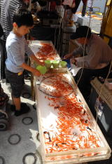 金魚すくいや鰻釣りも出ていました。鰻釣りは昔の祭りに良く出ていましたが、最近では珍しいように思います。金魚すくいは腕に覚えがありますが、救っても飼うところがないのでやめました。