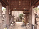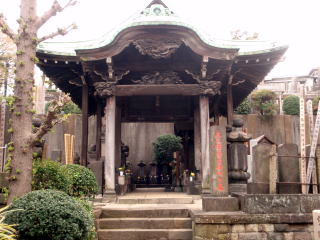 | 大久保彦左衛門の墓は都営地下鉄、白金高輪駅を出て、国道を渡りちょっと入った「立行寺」にあります。港区役所高輪支所を背に、左の坂を上って下ると清正公。正面の国道を渡り、右に入る斜めの道です。左の写真でおわかりのように、派手なお寺で標示もあります。 昔はあちこちからお参りに来る人が多く「大久保講」などと言う物もあったようです。大久保一族の墓は別格で、屋根がついています。そのしたに彦左衛門の墓は、さらにほこらのような屋根付きの囲いまであります。=写真・下= ![]() |