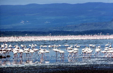 | 15)ガイド真っ青 ![]() 野生動物が、広々としたサバンナのあちこちに散らばっていた。本当の自然の中に生きていた。人間の銃から保護してやるだけで、」これほどの動物が生物界のバランスをある程度保って生きていることにびっくりもした。ローデシア、ケニア、タンザニアなどのナショナルパークは、そこに弾丸が飛んでこないと言うだけで、動物たちは集まってくる。 最初に“保護区”を嗅ぎつけるのは、草食動物。続いてサバンナの猟人とも言えるライオン、ヒョウ、チーターたち。逞しく精悍な肉食動物が忍び寄ってくる。残り物をあさるハイエナ、ジャッカル,ハゲタカが続く。セレンゲティ、ツァボ、などに比べて、アンボセリは乗用車でも走れる部分が多かった。雨季には水たまりになるところも、壁土のように固まり表面だけがパラパラと剥がれ,ほこりになるくらいだった。 「動物は心配ない。クルマの中にいる限り、襲っては来ない。私がストップと言わない限り安全だ」 アフリカ人ガイドの通称ピーターは自信たっぷり言った。 「ライオンや象がいてもか?」 「もちろん。私はガイドだ。私の言う通り走ってくれ」 いささか心細いが、猛獣たちのテリトリーへクルマを走らせた。タイヤ痕は大きく右へカーブしていた。小さな木の茂みがあり、短い下りになり、その先は緩い上りになっているのがわかる。ただ、茂みのすぐ先は草と細い木が邪魔して見えなかった。遥かかなたにキリマンジャロ。典型的なイメージにあるアフリカが展開していた。 瞬間的にハンドルを切っていた。一体なんだったか分からなかったが、本能的に避けた。乾期で枯れかかった草よりも、もう少し濃い、なにか、がそこにあった。ライオンの足だった。茂みに半分体を沈め、うつらうつらしていたライオンの鼻っ先をかすめるようにクルマは通過していた。脚をひきでもしたら、ただ事ではあるまい。恐らく一発は食らうことになったろう。その脚に気づかなかったガイドは苦笑いし腹いっぱいの肉食動物は、よほど刺激されなければ襲うようなことはしない。 「キリマンジャロとアフリカ象だ。いい写真になる。私の言う通りにすれば安全だ」 ガイドは繰り返した。怪しいもんだ。ライオンがいるのを見落としていたのだ…。ローデシアで象の群れに囲まれ、怖い目にあっている。ただ、この地で生まれ育ち、ガイドで生活しているアフリカ人の言うことを信じて、ゆっくりと巨象に車を近づけていった。50㍍程の距離で、いったん止まった。 「大丈夫だ。もう少し近づけ」 再びアクセルを少し踏んだ.20㍍までは近づいていないが、象は怒ると時速60㌔ほどで走れる。もう逃げられない距離だ。象はバタンと耳をばたつかせた。威嚇だ。遠ざからなければならない。 「そこを左へ…」 ガイドは指さした。何だと!その先はブッシュ。 「Go!」 ガイドが声をあげる。ブッシュの薄い、わずかなタイヤ痕を頼りに、低いギアで突進だ。後ろには、鼻を高々と上げて、象が威嚇を続けている。何とかブッシュを突破し、草原に出た。 ガイドは笑いもせず。額の汗を拭っていた。 |