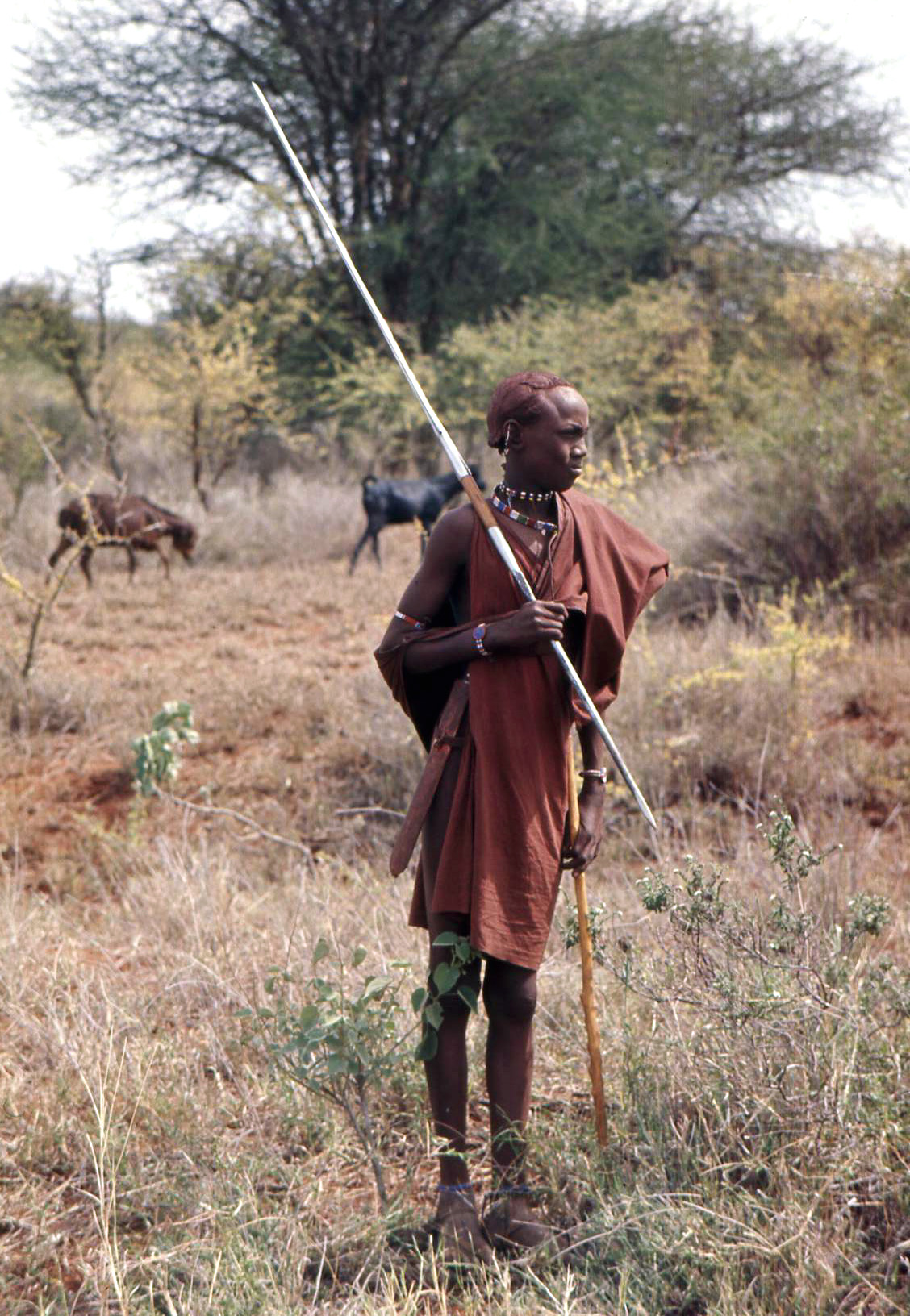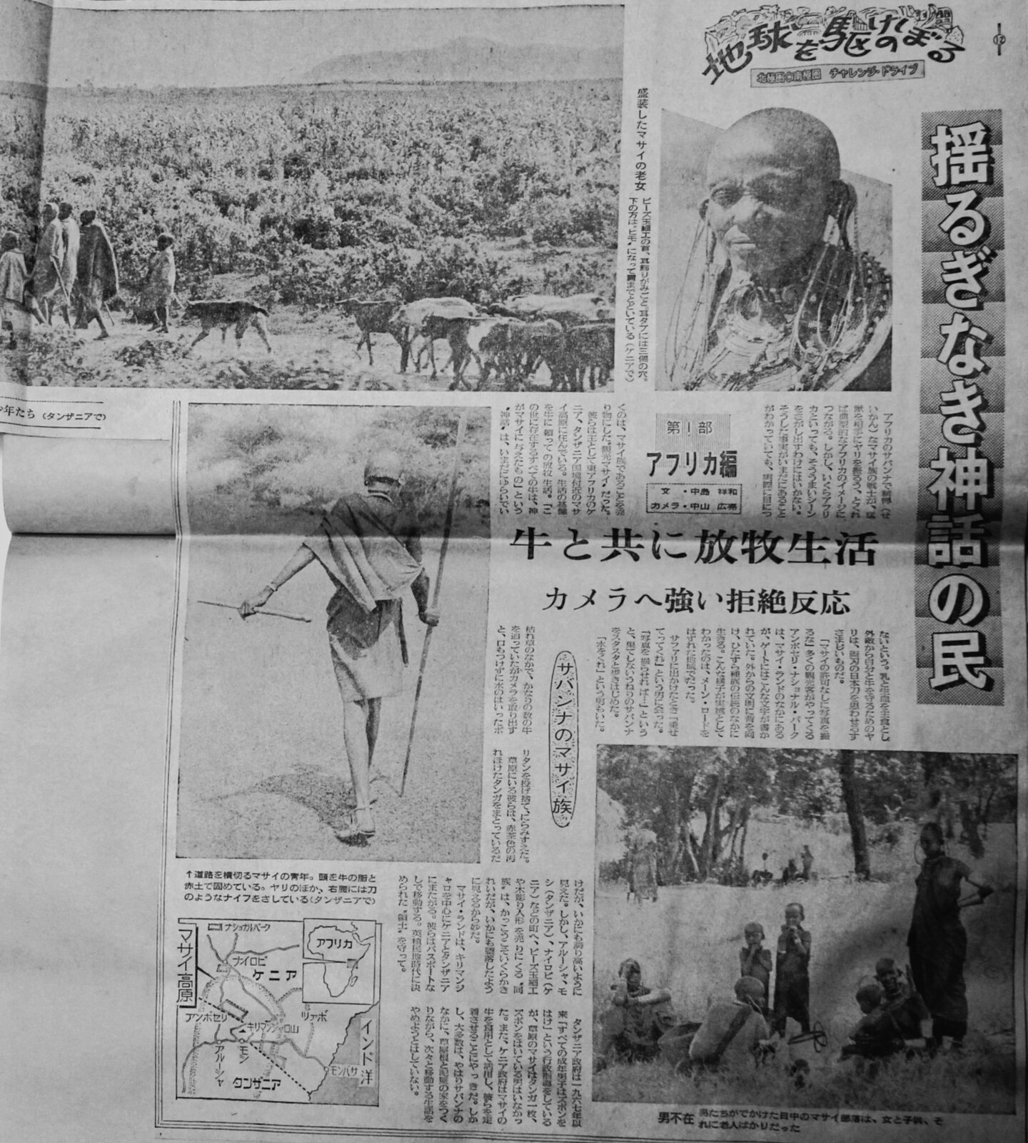 | 12)サバンナのマサイ族 サバンナで精悍なマサイ族の戦士が、猛獣を相手に槍を振るうー、となれば典型的なアフリカのイメージにつながる.しかし,幾らアフリカと言っても、そうそううまいいシーンを探し出す訳にはいかない。そうした事実が、いまだにあることが分かっていても,実際に目に付くのはマサイ族であることを売り物にした“観光マサイ”だった。 ![]() 彼らは主として東アフリカのケニア、タンザニア国境付近のマサイ高原に住んでいる。生活の基礎を牛に頼っての放牧生活。 「この世に存在するすべての牛は、神がマサイに与えたもの」という“神話”はいまだに揺らいでいないという。乳と生血を主食とし、外的から自分と牛を守るための槍は、双刃の剣を思わせる凄まじいものだ。 「マサイの写真はマサイの許可なしに撮るな」 多くの観光客がやってくるアンボセリ・ナショナルパークは、マサイランドの中にあるが、ゲートにはこんな文字が書かれていた。外からの文明に背を向け,ひたすら種族の伝統の中に生きる。こんな様子が実感として分かったのは,メーンロードを外れた地域でだった。 サファリに出掛けたとき「乗せてくれ」という男に会った。 「写真を撮らせれば‥」というと、果てしないうねりの続くサバンナをスタスタと歩き始めた。 「水をくれ」と言う男もいた.枯れ草の中で,かなりの数の牛を飼っていたが,’カメラを取り出すと、口もつけずに水の入ったポリタンを投げ捨てて,にらみ据えた。 草原にいる彼らは,赤茶色の汚れたタンガをまとっているだけだが,如何にも誇り高いように見えた。しかし、アルーシャ、モシ(タンザニア)、ナイロビ(ケニア)などの町へ,ビーズ玉細工や木彫りの人形を売りに来る“同族”は、格好こそいくらか綺麗だが,如何にも堕落したように見えるから妙だ。 マサイランドは、キリマンジャロの麓を含め、ケニアとタンザニアにまたがる。彼らはパスポートなしで移動する。イギリス植民地時代に決められた“領土”を守って。タンザニア政府は一九六七年以来「すべての成年男子はズボンをはけ」と行政指導しているが、草原のマサイはタンガ一枚、ズボンをはいている男はいなかった。また、ケニア政府はマサイの牛を食用として活用し、彼らを定着させることに躍起だった。しかし、大多数は、やはりサバンナの中に,草屋根と泥壁の家を作りながら,次々と移動する生活をやめようとはしていない。 |