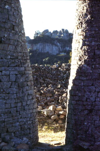 6)象の群れ ローデシア動物保護区 ![]() 太陽はサバンナを黄色っぽく染めていた.草食動物をたっぷりとながめ、宿へ帰ろうとゆっくりと車を走らせているときだった。数頭の象がのんびりと前方を左から右に横切った。さらに車を進めた。と、また前方にでっかいやつがのっそりと藪から出て来た。五十㍍ほど先である。怒らしちゃいけない瘏車をとめた。左手のヤブがざわざわと鳴った。赤い太陽が黒光りする象の丸っこい背中、頭、鼻などをシルエットで浮かび上がらせた。四つ、五つ、七つ…。バックミラーにも道路に降りた象が映っていた。 ローデシアの西部にあるワンキー・ナショナルパークでのこと。 「逆行で象を撮ったらきれいだろう」などと話ながら、群れを探していた。あらわれたのは絶好のシーンだが、白状すると数が多すぎ道をふさがれ、そんな余裕はいっぺんに吹っ飛んでしまった。 圧倒的な重量感のある奴が五㍍ほど先をうさんくさそうに通り過ぎる。首をすくめて後ろを見ると、巨大な尻にひょろりと短い尻尾が垂れている。象の群れは車などをいっこうに気にせず、悠々と自分たちの通路を移動していた。 「刺激しちゃまずい」と思い、もうエンジンまで切って息をひそめた。冷や汗である。動物の習性をよく知っている人にとって、この仕草はお笑いかも知れないが、はじめて群れの中にはいった感じは、おっかないの一語につき、ナショナルパークのゲートにあった注意書きを思い出した。それは髑髏にぶっ違いの骨。いわゆる“海賊マーク”の大きな奴が書いてあり、その下にこう続く。 「車から出るな。道路に沿って走れ」 これに反したら命の保証はしないといういみかが、髑髏のマークとなっていた。 象は十分ほどで“囲み”を解いた。移動していったのである。もうゲートへ向かって一目散。残った三十キロほどのゲートへの道が、やたらと遠く感じたものだった.パンフレットの説明や写真は、一般的にこけおどしが多い。期待すればするほど裏切られるのが常識だが、ワンキーではそれが控え目すぎる。 陽が傾く頃になると、水場に動物たちが集まってくる。キリンが長い足を開き、首をコンパスのように突き出して水を飲む。アンテロープ類やシマ馬は、ピリピリと神経質に辺りをうかがいながら、群れをなしてやってくる。もっそりとオス象が一頭、また一頭と姿を見せてはサバンナへ消えて行く。水場の近くに陣取っているうちに、いつの間にかそうした動物たちと、人間の間に何か約束事でもできあがって、決して危険は無いというような錯覚に陥る。動物園のオリをを隔ててしかそうした動物と接した事のない人間は、フト間にオリがあるような気にもなる。(右は原住民の聖地、ジンバブエの遺跡) 「ゲートとを出るのは午後六時まで。それに遅れないようにして下さい。遅れると捜索隊が出て、捜索費を請求されますよ」 ホテルのフロントが言っていた言葉も、象の群れに囲まれるまでは、下らない冗談くらいに聞き流していたが、なるほど、あそこでぶつけでもしたら、それっきりの事は確かだ。もっとも、後からケニアで動物を追い回して、ゾッとしたケースに比べると、象の群れを、それほど怖がることはなかったのだが…。 |