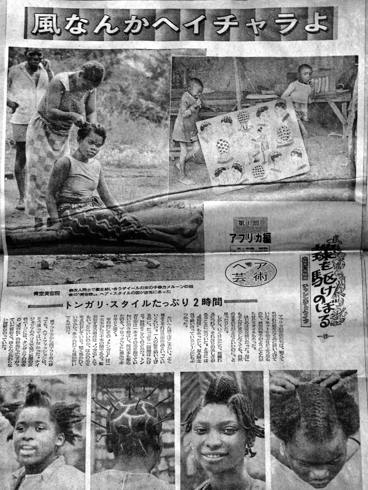 ![]() ![]() ”露天美容院?”で結い上げる髪型は手書きの”カタログ”?で選ぶ。一通り描かれていて、このスタイルの絵ばかりのカタログは、アフリカ全土でほぼ共通のように思った。ここの写真、右上の絵がそれ。ケニアから、ウガンダ、コンゴ、中央アフリカ、コンゴ、カメルーンのコースを辿りラ ゴスで一休みしたが、その時見た新聞には、これと殆ど同じ“美容院?”の宣伝が掲載されていた。 髪は数時間かけて、一旦ほぐして数本ずつ手で丁寧に延ばし、注文に併せて編み込む。なかなか凝っていて、難しい作業。ご覧の通りの髪型です。これは50年以上も前の写真ですが、アフリカ系のアーチストなどから、アメリカのアフリカ系の若い女性の間で次第に広まり、今や日本にも進出してきています。スノボで世界的に活躍する男子選手は,細い三つ編みを沢山垂らしています。最近(2026年)は、意外なことに10代の女の子が、細く編み込んだ三つ編みを肩まで垂らしているのには驚きました。 |