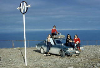 & Doriverの社長をしている高橋直弘さんや、パリダカの日本人パイオニア、横田紀一郎さんなども、この時代に海外ドライブで頑張っていました。東アフリカ・サファリ・ラリーで日産が注目されたのもこの時代でした。ノルドカップは途中から、スペインの病院に勤務する女医さんをリーダーに事務のオッサン、看護婦3人の5人組=写真・上=とノルウェーで出会い、フラメンコを教わりながら、楽しく北へ向かったのを思い出します。相棒は当時の会社の写真部員だった中山広亮君でした。ここに掲載する写真も、中山君が撮影したものです。機会があれば「世界の旅」のコーナーで、南アからノルウェーまでの写真とメモを掲載しようかと思っています。 |