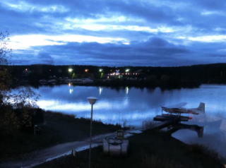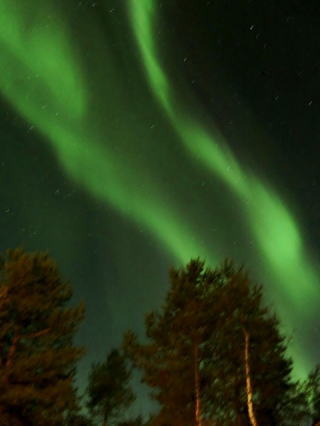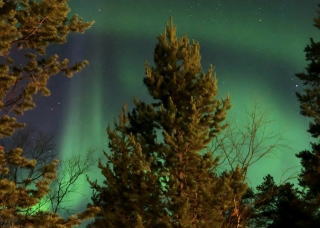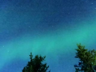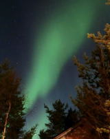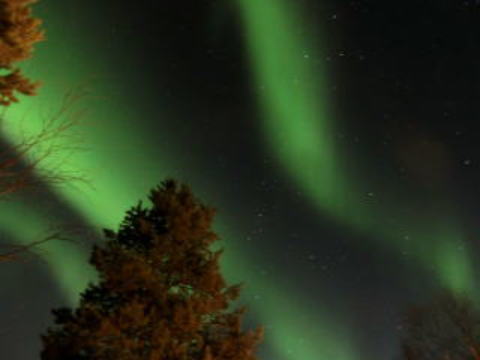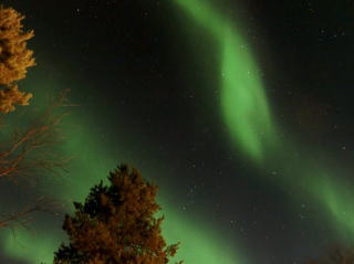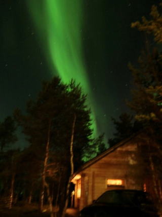 | ⑦ オーロラの出始めから終わりまで。 オーロラが見えたのです。一週間ほど天気も悪かったのですが、オーロラらしき影も見えず「こりゃ駄目だ。来年はカナダへ行こう。向こうの方が見えるようだぜ」などとぼやいていたのです。針葉樹の中のロッジへ泊まり、かなり上空が開けているので、広々とした場所へ行くこともせず、借りたロッジの前に出てみました。![]() そうしたら出たのです。「お化けとオーロラは出ない方が普通なんだ」などと言っていたのに、すっかり喜び、良い気持ちになってしまいました。その余韻はまだ続いています。そこで無精してロッジの前で撮った写真を掲載します。喜びすぎにはご容赦を。 空全体がなんとなくモヤモヤして来た後に薄い雲のようなものが広がってきました。 「オーロラかな」 「ちょっと寂しい光り方だな」 などと言って空を見上げていたのです=写真・左=。 そのうち幾分光りが増してきて、薄い黄色の帯ができはじめ、周囲はごく薄い紫がかって来たように見えました。期待が膨らみますが、それは長続きしませんでした。=写真・右= 暫くすると、光り全体が薄くなり「オーロラはもう終わりかよ」と言わせる状況になり「いくらかでも見えたから良いとするか」と、ロッジへ入るために、この日のために買ってきた安物の三脚を片付け始めたら、脚を引っかけて、これも買ったばかりのカメラごと、ひっくり返してしまいました。ババは呆れて笑います。「オーロラを撮ると言って買ったカメラを撮らないうちに壊したんじゃしょうがないねー」 最近のカメラは丈夫に出来ているのでしょう。かなりの音がしたのに、壊れてはいないようでした。 こんなことをして、ロッジに入るのに手間取っている時に、別の建物に客を案内してきたオッサンが「今夜は出るよ。ずーっと広がるぞ」と北から南の空を指さしました。なんとなく空を見ていたときです。今度はモヤモヤではなく、急に空が騒がしくなり、樹林の間、その上へ黄緑の光りが飛び出しました。上空へも光りはぐんぐんと広がり、慌ててカメラを向けたのですが、三脚に取り付け、マニュアルでシャッター速度を8秒、ISO感度は800、タイマーを2秒にセットするなど慣れない操作をやっていたら、オーロラはかなり広がっていました=写真・左上=。 ![]() 樹林の下の方が明るく、上の方はそうでもなかったのですが、間もなく帯となって、天空を駆け巡るようになりました。数本の帯だったり、大きく広がったり、くねりながら移動したり、それは見事でした。左右の写真はその様子の一部です。空を見上げるだけのババは「空全体に広がってる。魚眼レンズででもないと、とても撮りきれないね。写真撮ってるより見た方が綺麗だよ」などと言います。 レンズは28㍉、明るさは2.8なので、素人がいじるにはまずまず、 なのですが、北斗七星が綺麗に見える左上のくねったオーロラは、シャッター速度は5秒だったと記憶しています。ISOは800です。インターネットでオーロラの撮り方などが書かれていますが、中にはISO感度1600、シャッタは10~15秒などと言うのがあります。おそらくそれだと、昼間のように明るくなって、オーロラが撮れるのかどうか、気になるところです。ISO感度を下げて、15秒ほど露出してみたら、画面がぼけてしまいました。こんなことをやっていられたのも、見事なオーロラが30分以上は出ていたからです。ほんの2~3分のこともあるようです。オーロラ見物のツアーに出かけた人の多くは、見ることの出来ないケースが多いようです。 「晴れて、空気の澄んだ夜は、2日に一度は見える」 「年間200日は出ている」 こういう話は、決して嘘ではないのでしょうが、晴れて空気の澄んだ夜が、秋から春までの間に幾日あるのか、その条件に当てはまればの話です。 ![]() 先日テレビでやってましたが、タレントが2日続けて、豪勢なオ ーロラを見る設定でしたが、現地を見てきたばかりなので、どうも怪しく思えました。記録映像にタレントをはめ込んだような雰囲気もあるし、タレントが声を挙げるけれど、そこに姿はないことも奇妙でした。映像の加工技術は発達しているので、どうにでもなりそうです。右上と左の写真はそれまでとは別の北西から現れたものです。見ているところが北緯70度なので、ぐるりと地球を巡るオーロラ帯の真下です。ロッジの屋根の向こう側から、吹き上げるように延びています。周囲はいくらか紫がかっていたので、もう少し強く出ると、赤っぽくなるかな、の期待を持ちましたが、そこまでうまくはいきませんでした。 ロッジの屋根の後ろ側が明るくなり、次はどうなるのかと思っていたら、オーロラは乱舞をやめて、あっさりと消えていきました。 それこそ、南極、北極を除けば、くまなく世界を旅して来たババは、昔、北欧のガイドブックを書いて、何年も改訂のために訪れていますが、オーロラは飛行機の上からしか見たことがないそうです。 「死ぬまでにオー