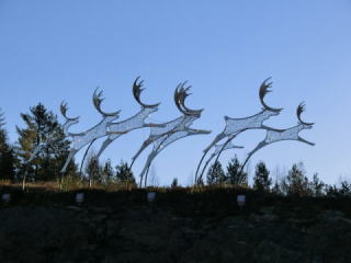| ⑥ ノルウェーから再びフィンランドです ノルドカップは厳密に言うとヨーロッパ大陸とは僅かに離れた島、で1999年に海底トンネルが開通するまでは、岬のあるマーゲロイ島へはフェリーで渡っていた。ホニングスボーグの町で、良い港があり、フェリーの発着していた桟橋の前には、ノールドカップ博物館や大きな土産物屋もある。鉱山もあるようでかなり賑わった町のように見えた。一通り町を走って見たが、まだ繁栄の余韻はあって、うらぶれた最果ての港町とは思えない。しかし、観光客のやってくるフェリーの港は、ほとんど船が着かず、我々も6870㍍の海底トンネルを通ったのだった。ホニングスボーグはトンネルをぬけてしばら くは幾つかの岬を巡り、トンネルをくぐって入り江に出ると、右へそれていくのだが、ノルドカップは左へたどる。従って、車で来た人はホニングスボーグへは立ち寄らないことになる。ジジ、ババは好奇心旺盛なので、行ってみたけれど、観光シーズンが終わったからかどうか、港の前の大きなビルにある博物館は、午前11時会館、土産物屋もそれに習っているので、町を車で流してみるほかはなかった。ノルドカップへ行く観光客はフェリーで、この町の港に着くほかはなかったが、そのルートはほぼ消えて、車は海底トンネル(無料)を抜けて町から離れたところを北へと向かう。 町は北の港としては大きく、重要なのだろうが、町そのものは次第に寂れざるを得ないだろう。土産物屋=写真・左=もかつてフェリーに乗降下港の前にあるものだけだった。個人と言うより役所が経営しているような様子だった。午前10時を過ぎているのに、店開きしていないのだ。大きなチェーン・ホテルもシーズンオフのためか休業状態だった。ルッセンスの町まで戻り、北上してきた道を分岐で右に取り、アルタ経向かった。このあたり、カラショクから北上して来たE6号線はE6国道として西に向かい、アルタへ行く。ノルドカップへはE69号線となる。片側一車線、往復2車線の道路は、制限速度90㌔なので、ガードレールもない道をかなりの速度で走って良いことになっている。交通量が少ないからこその制限速度と言えそうだ。 ![]() 起伏の多い国道をアルタへと走ったが、これと言った景色もない。アルタの町は長細い港町で、家々が散在し、丘の上に大きな教会とマーケットなどがあり、ここが中心となっているようだった。図書館などは景色のいいフィヨルドの西側にあったが、再びフィンランド方面へと走るジジ、ババは、ちょっと様子を見ただけで戻って来た。施設はあるのだが、一つ一つがかなり離れていて、地元の人でないと立ち寄ってみるのは困難だと思う。 アルタからはローカルの93号線を南下した。ローカルロードなので、国境の標識も「ToolGate」と書いてある広場をゆっくり走って再びフィンランドへと入国した。フィンランドの人はラップ語のスオミ、地元の白人の言う「SUOPMA」、英語のフィンランドの三つの言葉の書かれた標示があった。 「ここからはEUですよ」とブルーに黄色のホシノマークが国名を囲んでいた。泊まったのはエネンテキオという小さな町のコテージ。帰るまでに余裕があるので、針葉樹の中に散在するコテージに2泊することにした。すぐ側を大きな川が流れ、そこへ注ぎ込む小川もコテージの森の中を流れていた。夏ならばます釣りなども出来そうな所だった。森の中には綺麗な苔が何種類も生えていて、ぶらぶらと歩いていると、目を楽しませてくれた。オーロラが出たのは、2泊目だった。 |