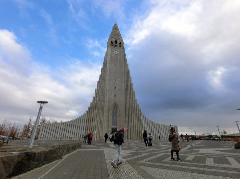 首都・レイキャビックは古い町と新しい町が“混在”しているように思いました。町の中心部でもある丘の上に、八トルグリムス教会(写真・上)が建っている。高さ74.5㍍。1937年に設計されたが、着工は1945年。それから40年の歳月をかけて作られたと言うから気が長い。教会の前には紀元1000年頃にヨーロッパから初めてアメリカ大陸に渡ったと言われるレイブル・エイリクソンの像がある。