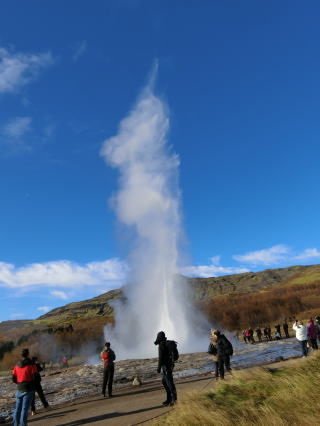 滝からそう離れていない所に、間欠泉があります。5分ほどに一度、吹き上がるものと、一日に数回吹き上がるものがあります。間欠泉そのものは、日本人にとって珍しいものではないので、5分程度の間隔で吹き上がるものを見物しました。