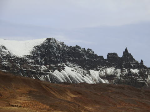 一号線をレイキャヴィクからアクレイリへ移動する途中で見かけました。麓は広々としていて、洒落た牧場の建物があり、まさにヨーロッパ・アルプスを思わせたのでした。