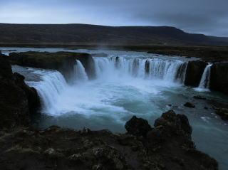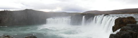アイスランド北部の町、アクレイリからゴーザフォス、ミーヴァント湖、ミーヴァント・ネイチャーバスなどを巡った。ゴーザフォスは、アイスランドのこの地方の人々が、キリスト教に改宗したとき伝統の神々の像や神具を投げ込んだという言い伝えがある。左岸の滝に近い駐車場には首長と覚しき人が、ものを投げ込む絵があり、改宗したことが書かれていた。