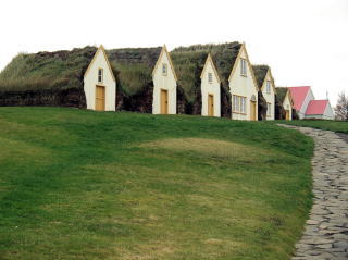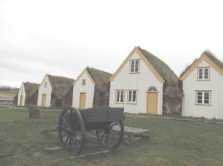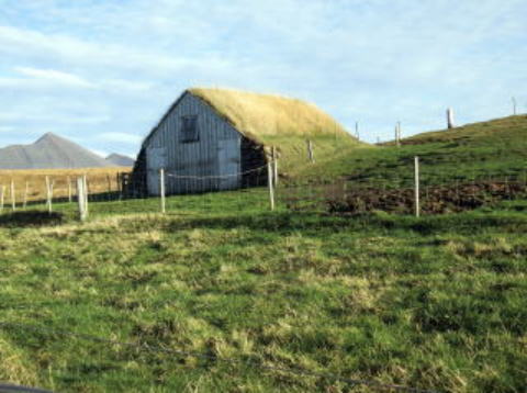 家の壁、屋根もこの草から出来た泥土で固めています。偶然ですが数日後になってレイキャビックから100キロほど北のアクラネス半島を走っていて、似た建物を発見しました。海岸に近い牧場の片隅にあったのですが、同じような泥土で壁や屋根を固め、そこには一面に草が生えていました。