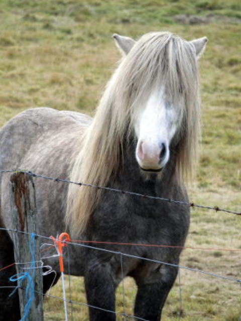 ところでこの馬。何かに似てませんか?ヘアスタイルですよ。この馬たちはずっと前から、それこそ先祖代々、髪が落ちてくると目の前が“すだれ状態”になるのです。アイスランドホースはいくつかの髪型があるようで、一様ではありません。