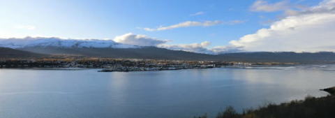 町は深い入り江の奥にあり、対岸の丘の上からは、入り江越しに町が見えます。背後には雪をかぶった山が連なっています。この国は漁業が盛んだと聞きましたが、漁船は殆ど見えず魚市場は見つけられませんでした。おそらく海上で大型の冷蔵船へ引き渡すのでしょう。鱈の干し場はノルウェーの例から見て、もっあ会っていいように思いましたが、ほんの少し見かけただけでした。