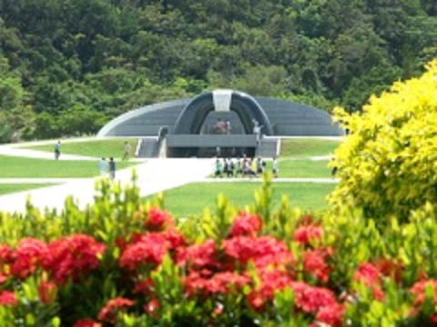 隣接する「ひめゆり平和祈念資料館」には沖縄戦の悲惨な様子や亡くなった女子学生の遺影、学生当時の写真や持ち物、学生生活などが展示、生存者の戦争体験などが語られている。