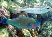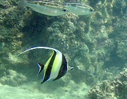 透明度抜群の海中を覗くと、浅く、深く珊瑚礁の棚はさまざまな形をつくり、その間にはたくさんの魚たちが泳いでいた。まるで水族館の中を自分が泳いでいるかのようだ。赤い魚、青い小さな魚、黒く大きな魚、種類も数もこれほど多く、視界いっぱいに飛び込んでくる魚の群れは未だかって見たことはなかった。